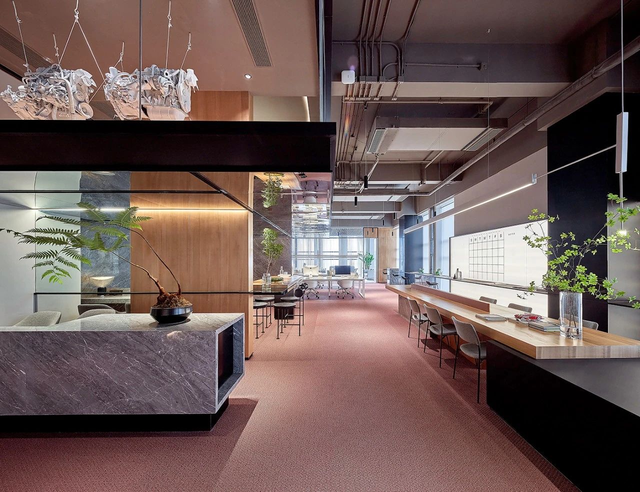 整个改造设计采用减法剥离出空间及结构原型,并克制地将材料纳入空间体系,由此增加空间的视觉高度和阔度,在未来办公空间发展上的新模式上,当下和未来有更多公司的无限可能都将在这里展开。