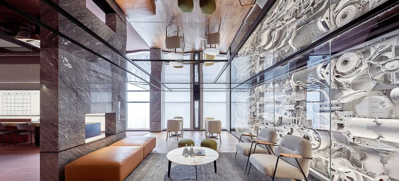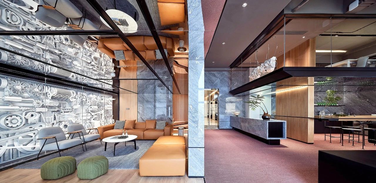 本次的设计是在一个汽车产业园区中,毗邻运河,设计师希望在为使用者提供舒适办公体验的基础上,创造一个略带酷感、流动而开放的工作空间,以承载未来多变的需求,我们希望打破空间和时间界限,这与当代新型办公空间的态度不谋而合。