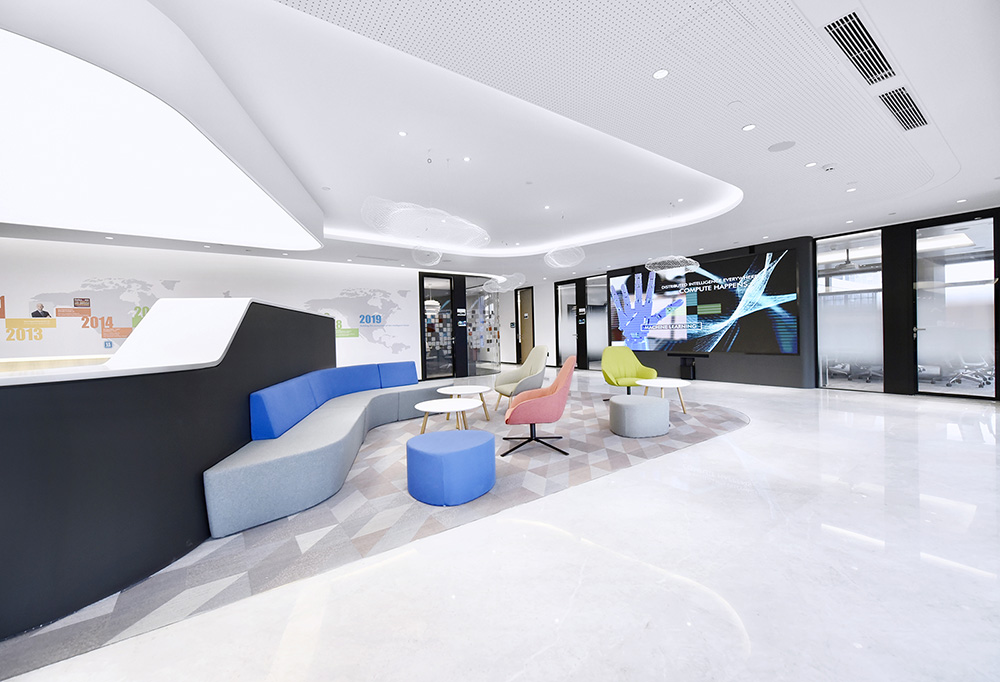 Tags:科技,中国、活力、曲线与直线、鹅卵石、自然采光、工业风。 主要材料:BOLON编织地毯、Milliken地毯、Burgeree、Gabriel、Armstrong、HYUNDAI L&C木纹膜及水泥膜、老榆木、雅典白大理石、杜邦
