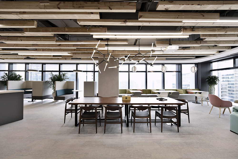 面的功能区分,办公区与会客区相互融合。