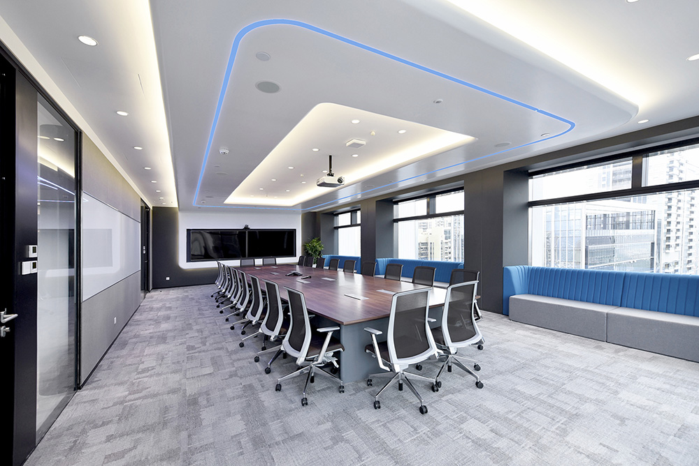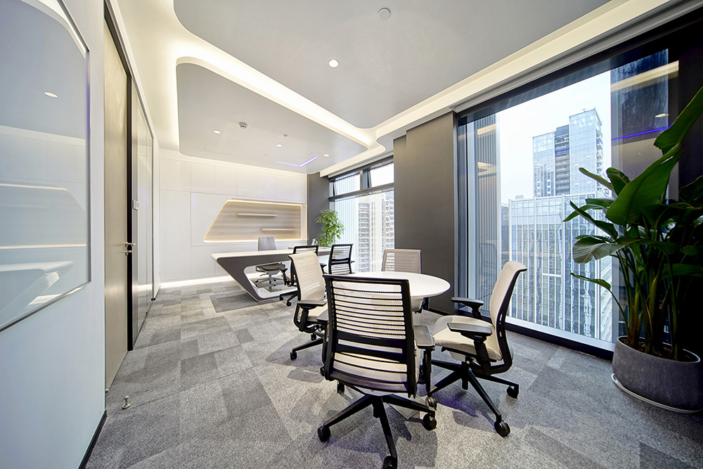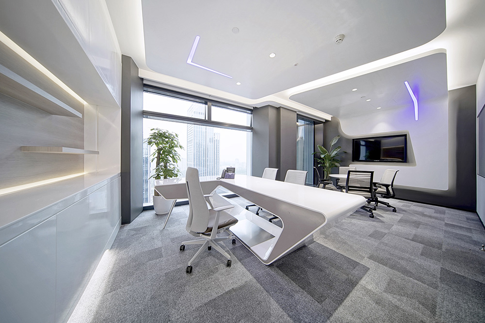 CEO办公室的设计初衷,源于对建筑业界大师一款经典班台的致敬;室内材料简单,用色单纯,亮白与高级灰相互衬托;线条连接自然、流畅。天花的变化对应平