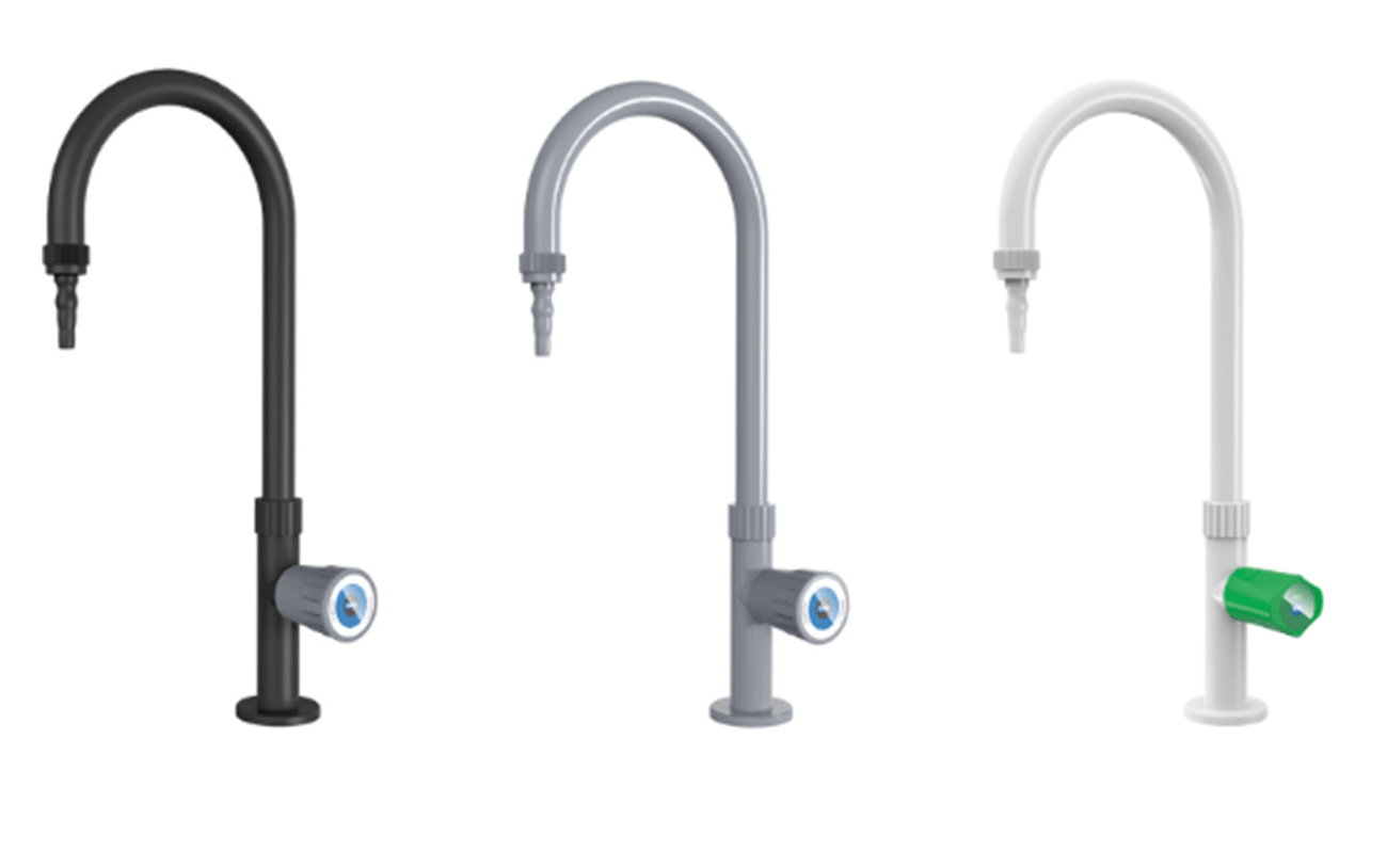 KA5 单口化验龙头主体:加厚铜质涂层:高亮度环氧树脂涂层,耐腐蚀、耐热,防紫外线辐射陶瓷阀芯:90°旋转,使用寿命开关50万次,静态最大耐压10巴附件:可拆卸铜质水嘴,可加接防溅滤水器开关旋钮:高密度PP,人体工学设计,手感舒适鹅颈管:可360°旋转