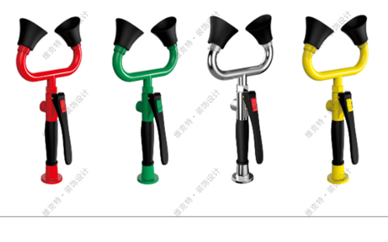 洗眼喷头:加厚铜质环氧树脂涂层外加软性橡胶,出水经缓压