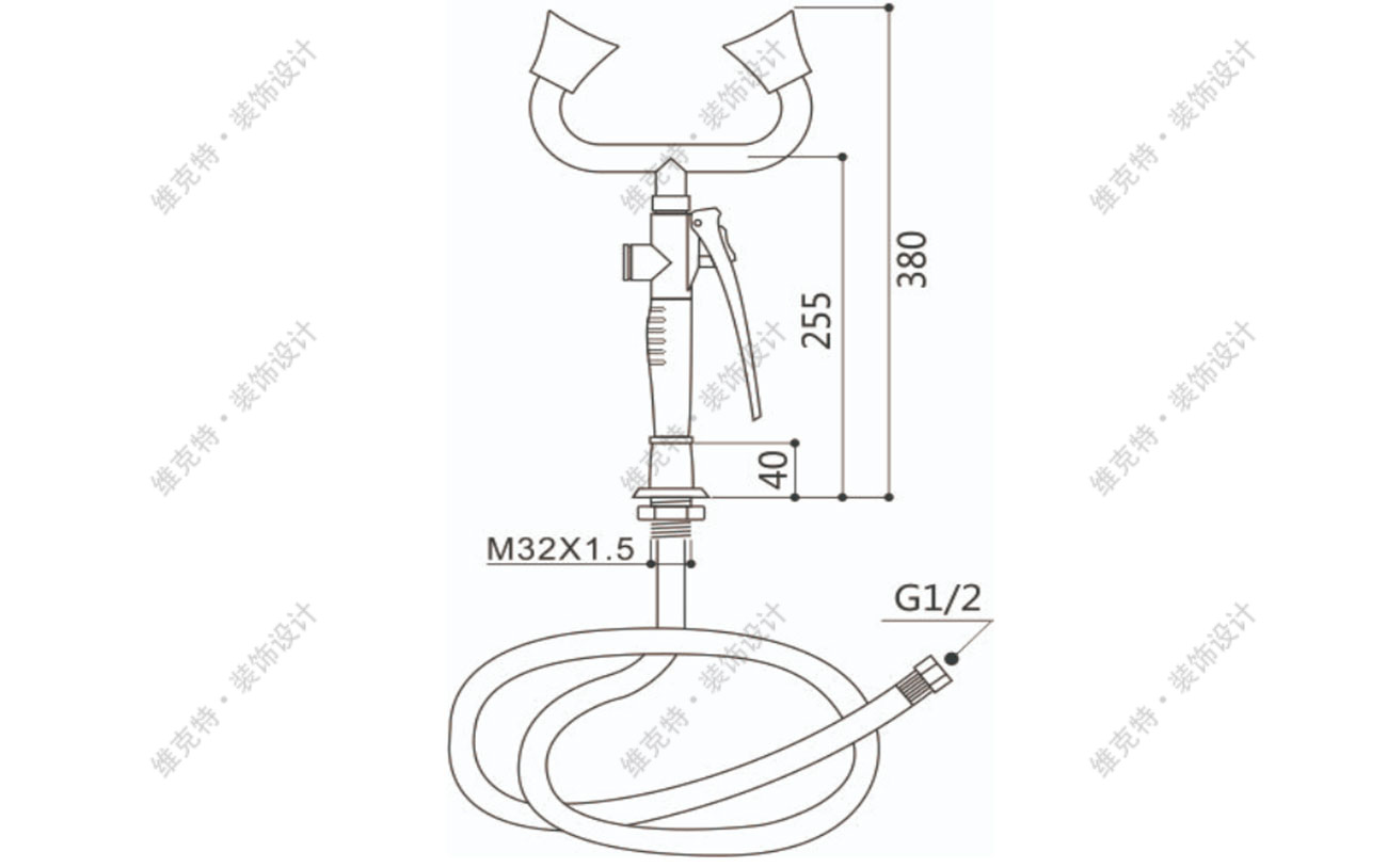 供水软管:长度1.5米,软性PVC管外覆不锈钢网,外层包裹PE管,