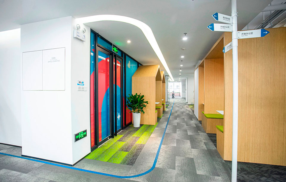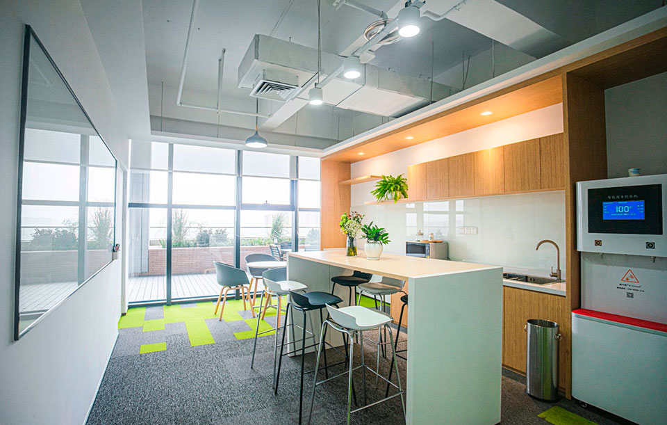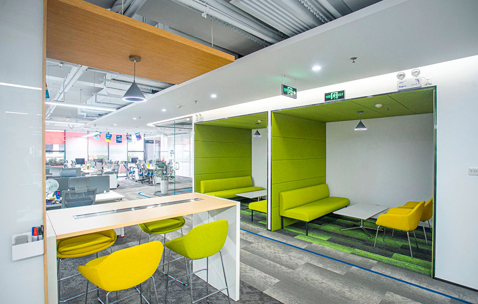 开放融合的空间环境,弱化空间的视觉界限,打造开放高效的人性化共享办公空间,提升空间价值。