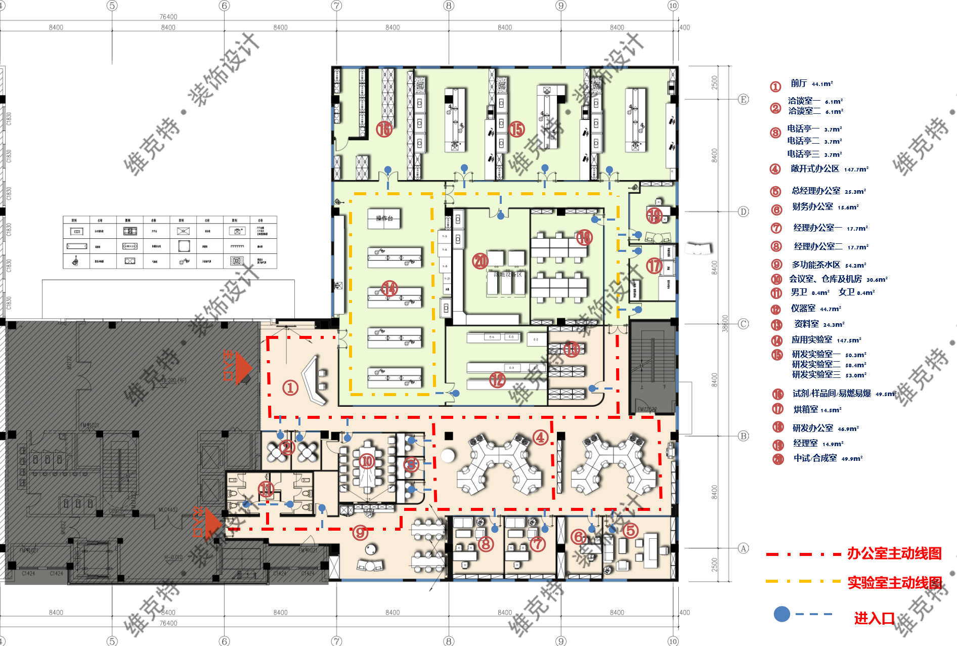 实验室+办公室装修设计 / 1400㎡