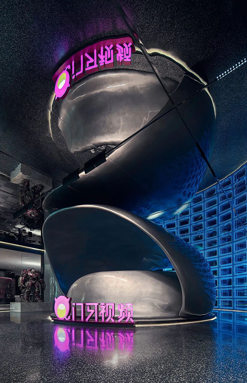 门牙视频是一家短视频MCN机构,成立短短的几年内,以爆破般的速度发展成为行业头部公司,这其中,除了对时代趋势的精准预判,更少不了的,是门牙的勇士精神。经过对门牙多次的沟通,沉浸式地参与员工的办公日常,决定将门牙的企业基因以概念的形式置入空间的设计,以“未来超链接”为灵感,将办公室打造成专属于门牙的“星球”,结合对于团队有特殊意义的潮玩装置,而所有的“门牙星人”走入这个空间时,经由环境的语言引导,他们仿佛成为了来自未来的奇兵。